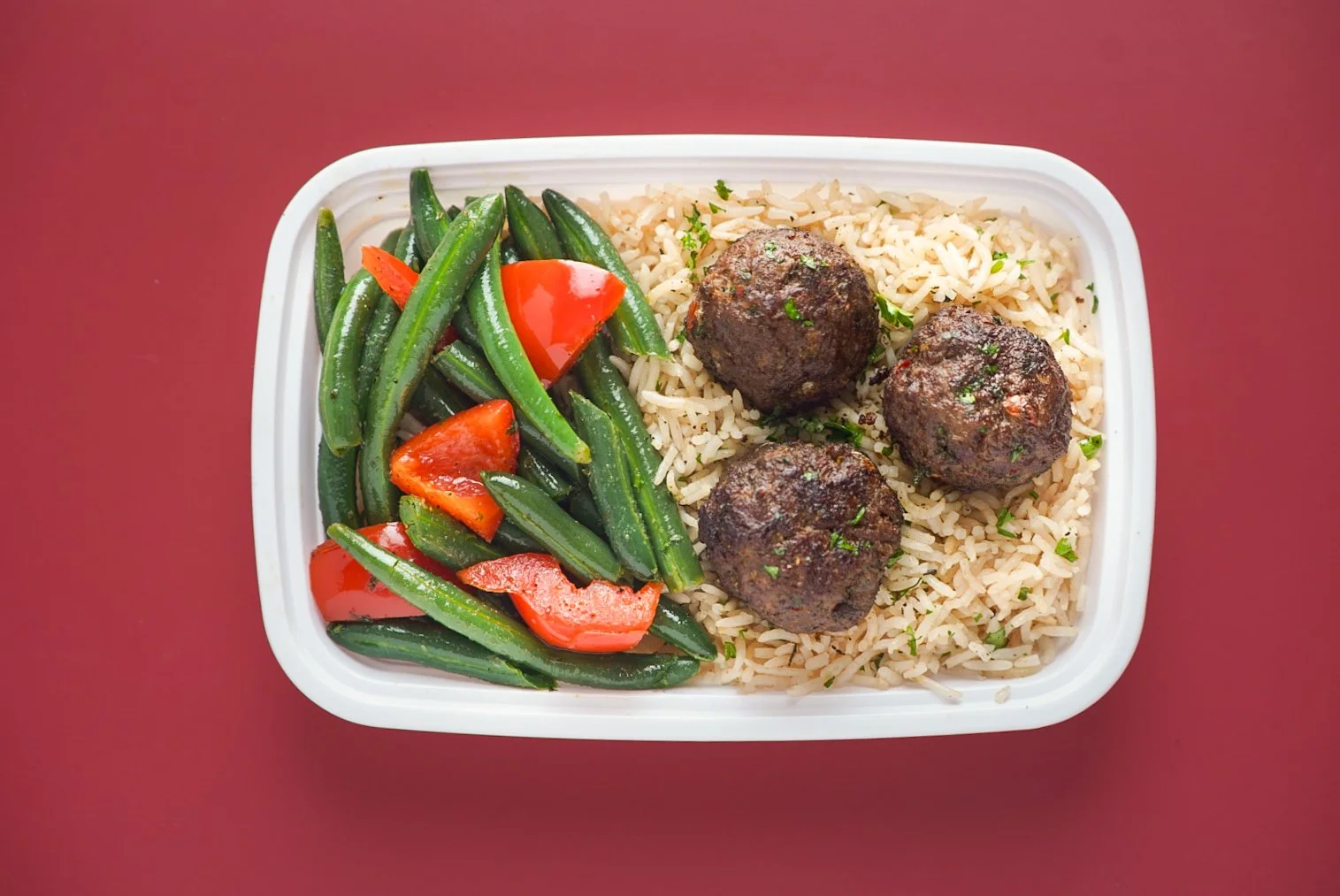 Kofta Meatballs with Seasoned Vegetables and Rice